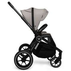 Рама коляски Muuvo Quick 4.0 имеет хорошую амортизацию и большие гелевые колеса, не нуждающиеся в обслуживании, которые справляются с любой местностью. Коляска MUUVO QUICK 4.0 имеет черную раму и ручку, обработанную искусственной черной кожей. Ручка коляски телескопически регулируется. Вместительную корзину можно заблокировать, что защищает покупки и аксессуары от грязи и пыли.