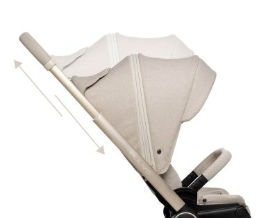 Спинку можно регулировать в трех положениях: полностью сидя, полулежа и горизонтально. Подножка также регулируется, она выдвигается для более длинных ног и полностью складывается, когда обувь ребенка достигает передней оси. Коляску можно использовать как лицом по ходу движения, так и лицом назад. Спинка сиденья регулируется и может быть выдвинута, чтобы создать большее место для старшего ребенка.