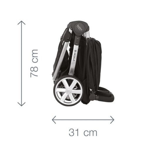 - Размеры прогулочной коляски в сложенном виде: 31 см – 72 см – 78 см