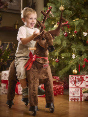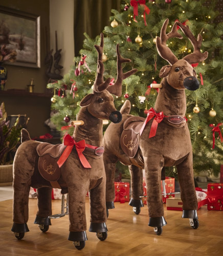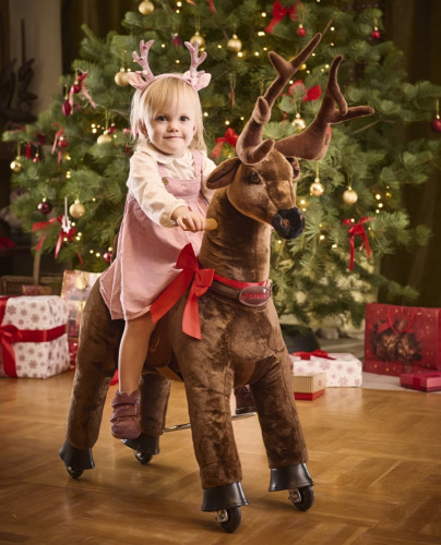 Механическая игрушка олень на колесах Snorri Ponnie S - ваш партнер для зимних приключений в помещении и на природе! Отправляйтесь на Северный полюс или прямо в гостиную за печеньем. Олень, ездящий верхом!