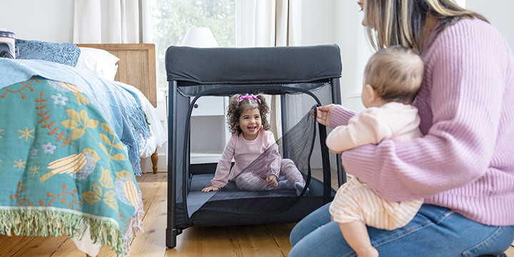 - По мере того как ваш малыш подрастает, боковой вход на молнии превращает кроватку в безопасный манеж, позволяя вашему ребенку самостоятельно входить и выходить из него с полным удовольствием.