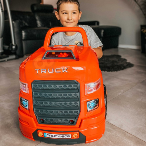 - - игрушка эффективно имитирует переднюю часть грузовика с подъемным капотом, рулем и приборной панелью,