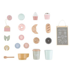Маленькая кофейня Little Dutch LD2508 – благодаря деревянной кофейне ваш ребенок превратится в настоящего бариста. С этим волшебным набором вы и ваш ребенок можете иметь любимое кафе у себя дома. Ваш ребенок с удовольствием приготовит вкусные напитки и печенье на месте и на выносе. В кофейном уголке есть кофеварка и чайник, место хранения всех чашек и других необходимых вещей, витрина для закусок и доска из меню. Многочисленные аксессуары, такие как рогалики, пончики, пакетики с чаем и капсулы с разными сортами кофе обеспечат много часов великолепного развлечения.