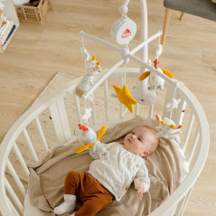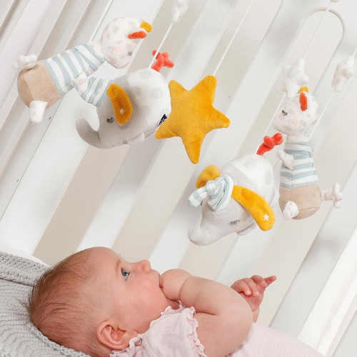 Мобиль ZOPA Good Night BF BFE053180 - заводная карусель с мелодией «Weißt du wieviel Sternlein stehen» и очаровательными фигурками для успокоения – легко крепится к кроватке для детей в возрасте от 0 до 5 месяцев.