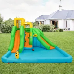 - Безопасный дизайн и волшебные аксессуары: Верхняя часть горки окружена полной дышащей сеткой, чтобы обеспечить безопасность детей во время игры. Для дополнительного развлечения в комплект входят сумка для переноски, 8 стойк для стабилизации, 4 заплаты для ремонта, шланг и надувной мяч.