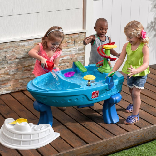 Водный столик с песочницей STEP2 Fiesta Cruise Sand&Water Table 8947 – многофункциональный столик Кораблик, благодаря которому можно отправиться на солнечный отпуск и поплавать водами Карибского моря. В водном столике есть отверстие для зонта.