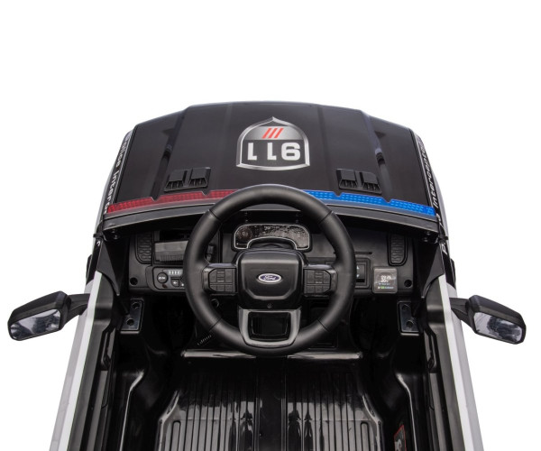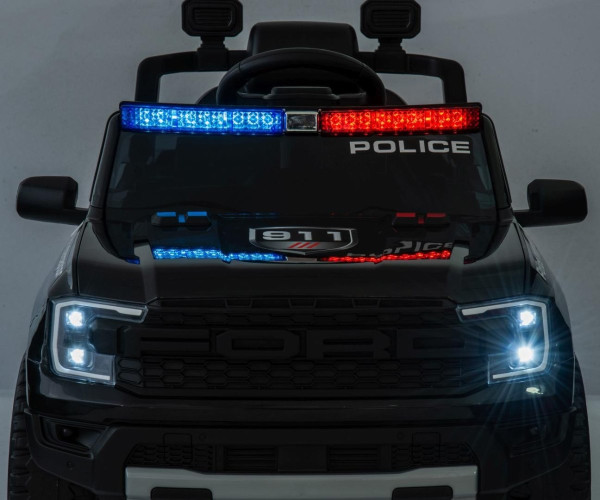 Модель имеет LED-подсветку спереди и полицейскую сирену с мерцающими синими и красными огнями. На кузове и лобовом стекле размещены характерные отметки POLICE, а в автомобиле установлен мегафон с грушей, что подчеркивает его служебный и исключительный характер. Автомобиль обладает мультимедийной панелью с USB-входом и возможностью воспроизведения любимой музыки в формате MP3.