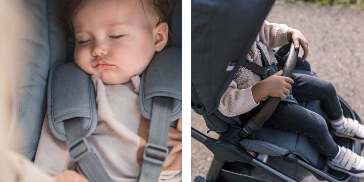 - Расширяемый капюшон с защитой UV 50+ – четыре панели для надежной защиты от солнца и ветра.