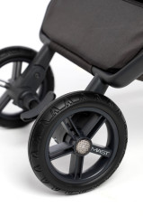 - Коляску оборудована колесами High Performance с полной амортизацией на все 4 колеса и дополнительными пружинами спереди.