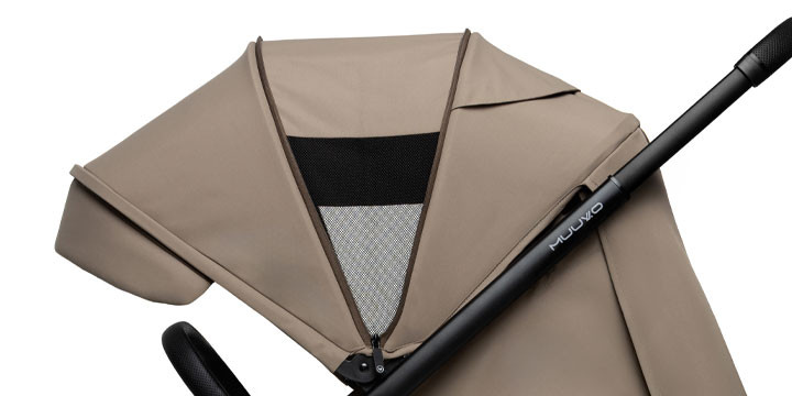 - Воздухопроницаемый капюшон с вентиляционной панелью: широкая запирающаяся вентиляционная панель в капюшоне обеспечивает постоянное поступление свежего воздуха, защищает внутреннюю часть коляски от перегрева и поддерживает приятный микроклимат; Ее можно быстро застегнуть на молнию в прохладные дни. Коляска Muuvo GO готова к любой погоде – эта коляска обеспечит немного тени и свежего воздуха.