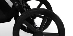 - Большие колеса, не требующие обслуживания: 8-дюймовые передние колеса и 11,5-дюймовые задние колеса изготовлены из устойчивого к проколам пенопласта; они обеспечивают устойчивость и плавную езду без необходимости подкачки. Большие колеса коляски Muuvo Go позволяют комфортно скользить по земле, вне зависимости от рельефа.