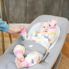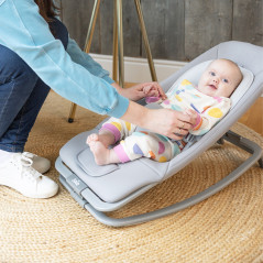 Чтобы обеспечить максимальный комфорт для вашего ребенка, вы можете наслаждаться тремя положениями наклона спинки и двумя положениями подставки для ног. Легкое покачивание и подпрыгивание благодаря движениям вашего ребенка обеспечат расслабляющий опыт. 3-точечный ремень безопасности SoftTouch с мягкой нижней частью эффективно фиксирует вашего ребенка внутри. Фиксатор качели складывается вниз, превращая качели в стационарное сиденье.