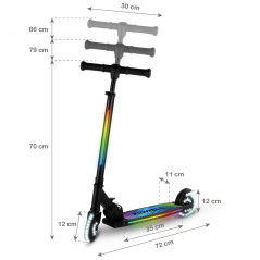 - Светодиодное освещение управляется кнопкой, встроенной в противне самоката.