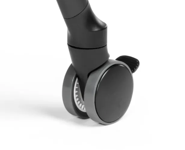 Высокая мобильность и компактная сборка: Четыре резиновых поворотных колеса с тормозами обеспечивают легкое перемещение кресла, а в сложенном виде конструкция стоит самостоятельно, занимая минимум места. Идеальное решение для небольших помещений.