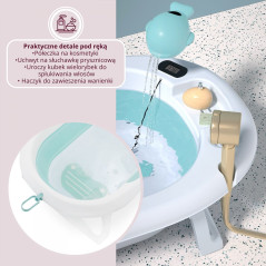 Каждый элемент ванны Holly разработан для того чтобы сделать ежедневное купание максимально простым. Встроенный цифровой ЖК-термометр постоянно отображает температуру воды, устраняя риск ожогов или переохлаждения – один взгляд показывает, что вода имеет идеальную температуру. В комплект также входит волшебная чашка в форме кита, облегчающая ополаскивание волос и превращающая купание в веселое занятие.