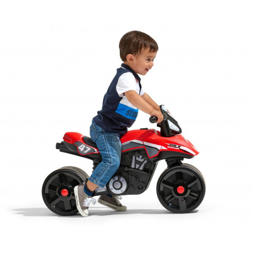 Велобег FALK Racing Moto – беговой велосипед от французской компании Falk, производящей детские велосипеды, является идеальным подарком для ребенка в возрасте от 12 месяцев. Хорошая графика и очень реалистичный вид доставят много радости маленьким детям. Каталка оснащена большими колесами, которые отлично подходят для разных поверхностей. Переднее колесо поворотное для более удобного управления и поворотов.